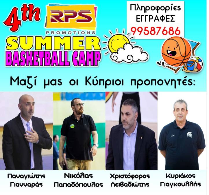 Η Διεύθυνση της Ακαδημίας μας είναι στην ευχάριστη θέση να ανακοινώσει τους τέσσερις Κύπριους κορυφαίους προπονητές, που θα δώσουν το παρών τους στο 4ο R.P.S. SUMMER BASKETBALL CAMP, που διοργανώνει η Ακαδημία μας, από τις 26 Ιουνίου μέχρι τις 7 Ιουλίου.